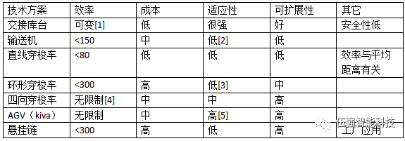 [4] 四向穿梭车和AGV理论上可以通过增加车辆的数量来提升效率,但对于具体情况而言,还受空间的约束,太多的车辆事实上会造成拥堵。一般情况下,对于一个10个以上巷道的立体库而言,其输送能力设计保持在200~300托盘/小时即可,过高会导致投资增加,而且会使得系统平衡被打破。