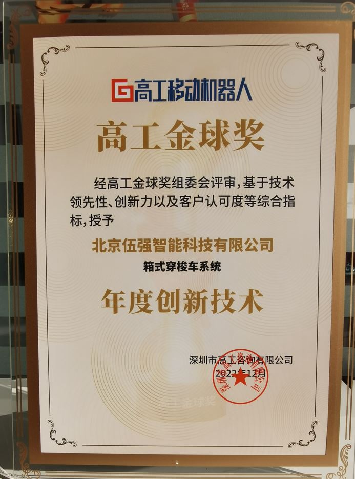 在颁奖晚宴现场,大会公布了高工金球奖获奖企业名单,w66给利老牌智能科技凭借箱式穿梭车系统,荣获2022高工金球奖——年度创新技术。